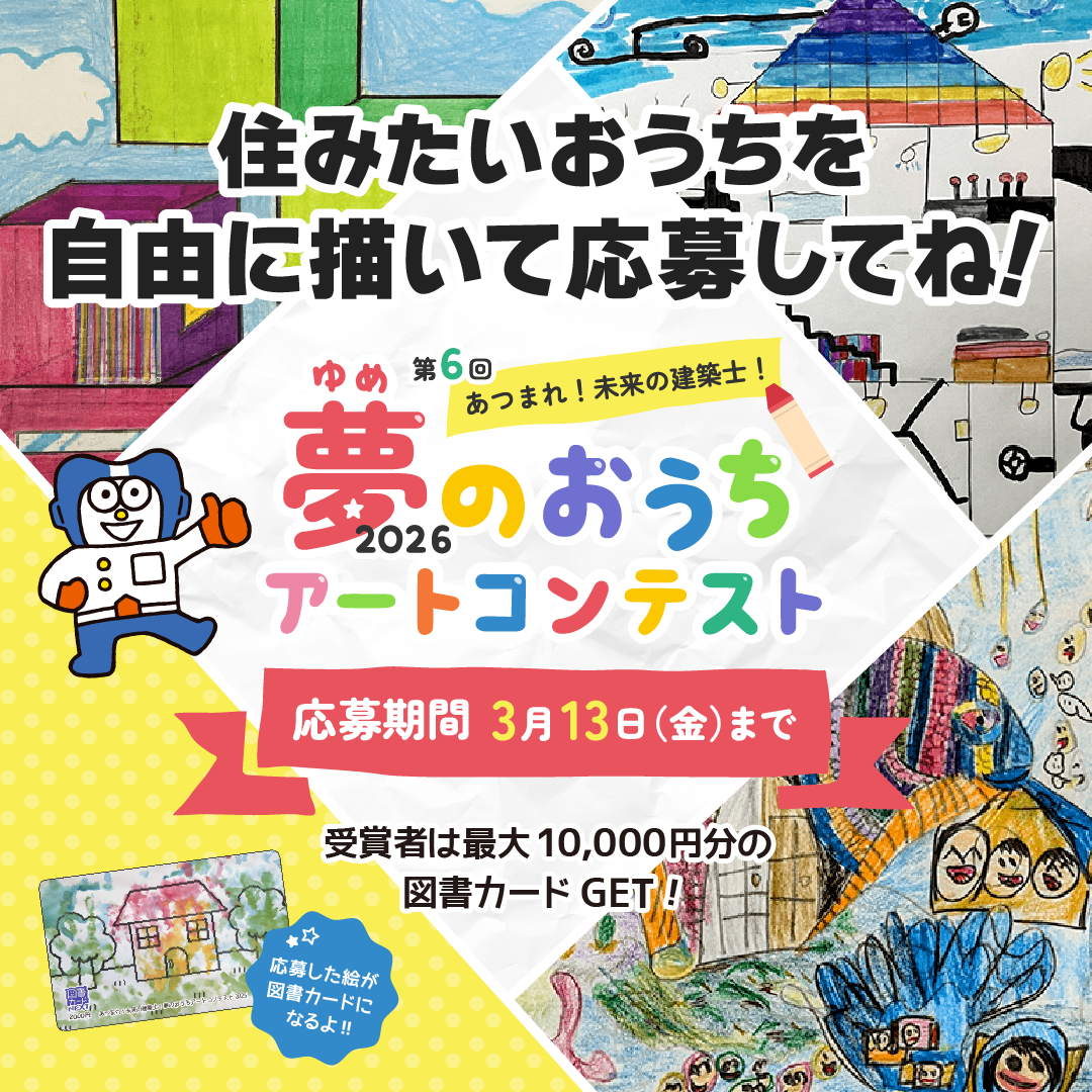 日ごろからママやパパ、ご家族のことをよーく見ている子どもたちにとって「こんなおうちに住んでみたい」「こんな家があればすてきだな」と思う夢のおうちを募集中!